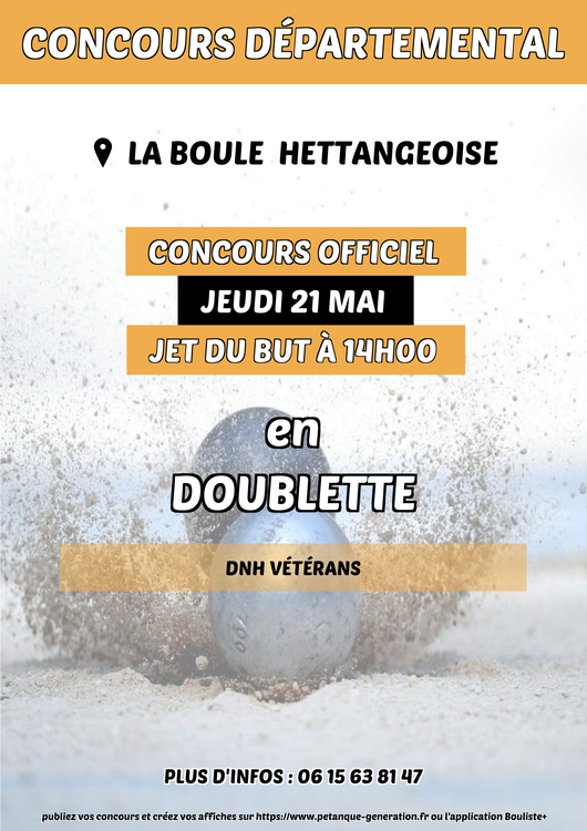 Concours Départemental en Doublette - LA BOULE HETTANGEOISE - jeudi 21 mai 2026