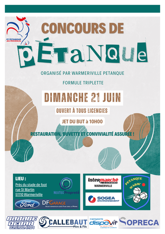 PETANQUE VITRYATE, DOUBLETTE MIXTE, 13H…