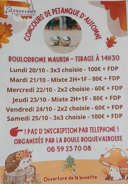 Semaine bouliste roquevaire 3x3 choisis Buvette sur place pas d'inscription par téléphone